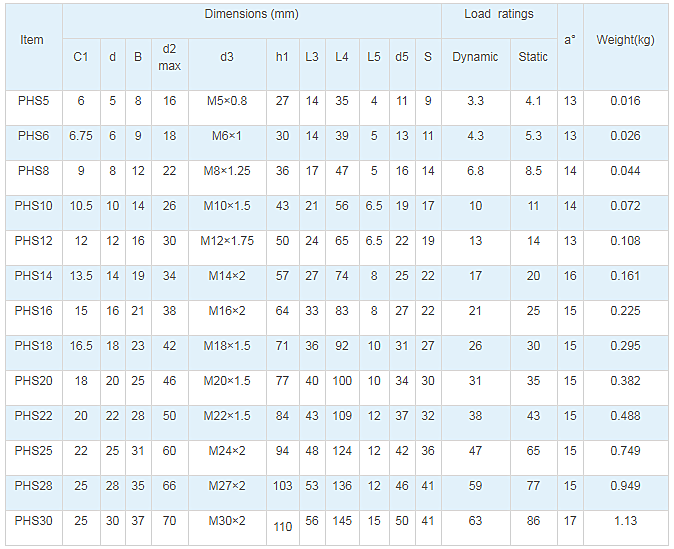 Rod end is made of steel, zinc coated, with male or female thread; Sliding surface with bronze liner; Inner ring is made of carbon chromium steel, spherical surface with hard chrome plated. It can be relubricated via a nipple or a hole in the rod end, except the hole diameter d is less than 6.